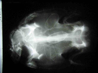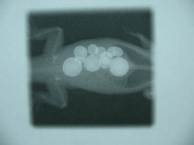 - Röntgenbild: Phelsuma mit Blähtonkugeln (Hydrokultur) im Darm!