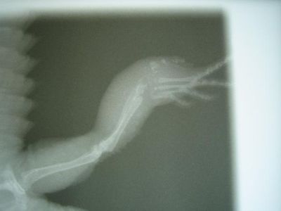 - Röntgenbild: Dornschwanzagame mit Abszeß im Mittelfußbereich und Osteolyse